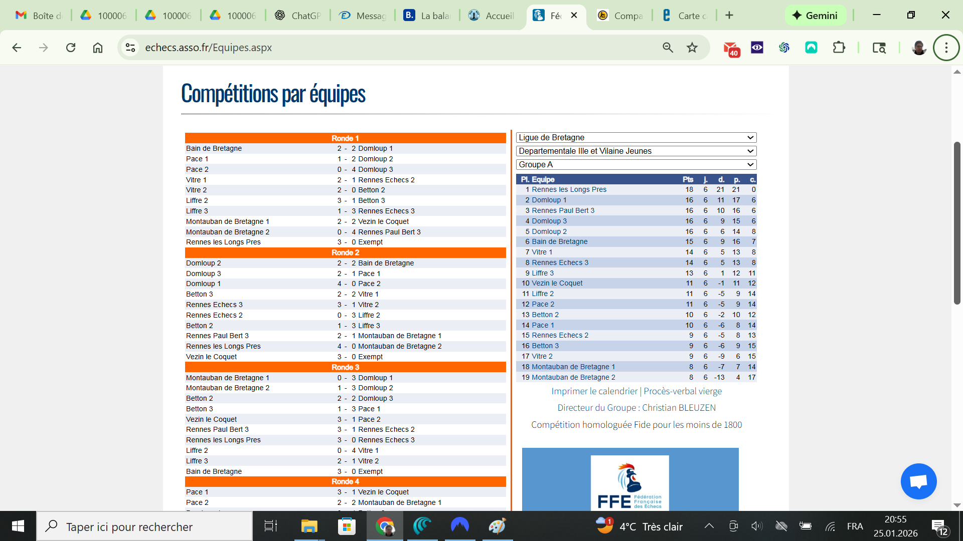 La dynamique est bonne : Betton 2 vient d’enchaîner une perf très solide, et Betton 3 a parfaitement répondu après la ronde 5. La suite s’annonce intéressante : chaque match va compter, et nos jeunes ont clairement les moyens d’aller chercher des résultats !